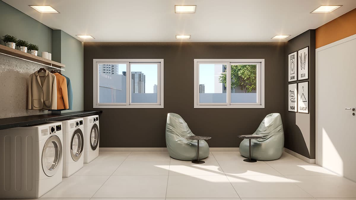 Ilustração artística da planta do apartamento final 9 de 45,22m². Todos os móveis, objetos, pisos, rodapés, molduras, sancas e alguns pontos de iluminação estão dentro dos parâmetros comerciais e servem somente como sugestões de decoração, não integrando o imóvel comercializado. Todos os detalhamentos de equipamentos e acabamentos que farão parte deste empreendimento constam no memorial descritivo. Visite o stand de vendas e conheça mais plantas do empreendimento. Material preliminar, sujeito a alteração.